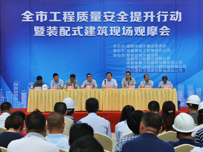2017年6月27日上午,市建委在新都“锦丰新城”项目组织召开了全市工程质量安全提升行动暨装配式建筑现场观摩会。会议由成都建筑工程集团总公司承办,各区(市)县建设行政主管部门,在建工程项目建设、施工、监理等责任主体单位负责人共约700人参加会议。